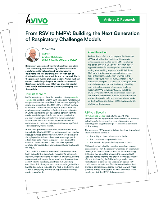 Respiratory viruses such as RSV and hMPV present persistent challenges for drug and vaccine developers. Controlled human infection models are transforming how these pathogens are studied, enabling faster, more predictive clinical development.