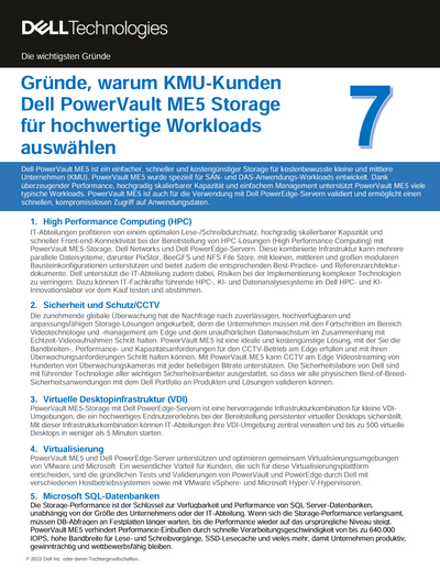 Laden Sie das vollständige Dokument herunter und entdecken Sie die wichtigsten Gründe, warum PowerVault ME5 die richtige Wahl für Ihr Unternehmen ist.